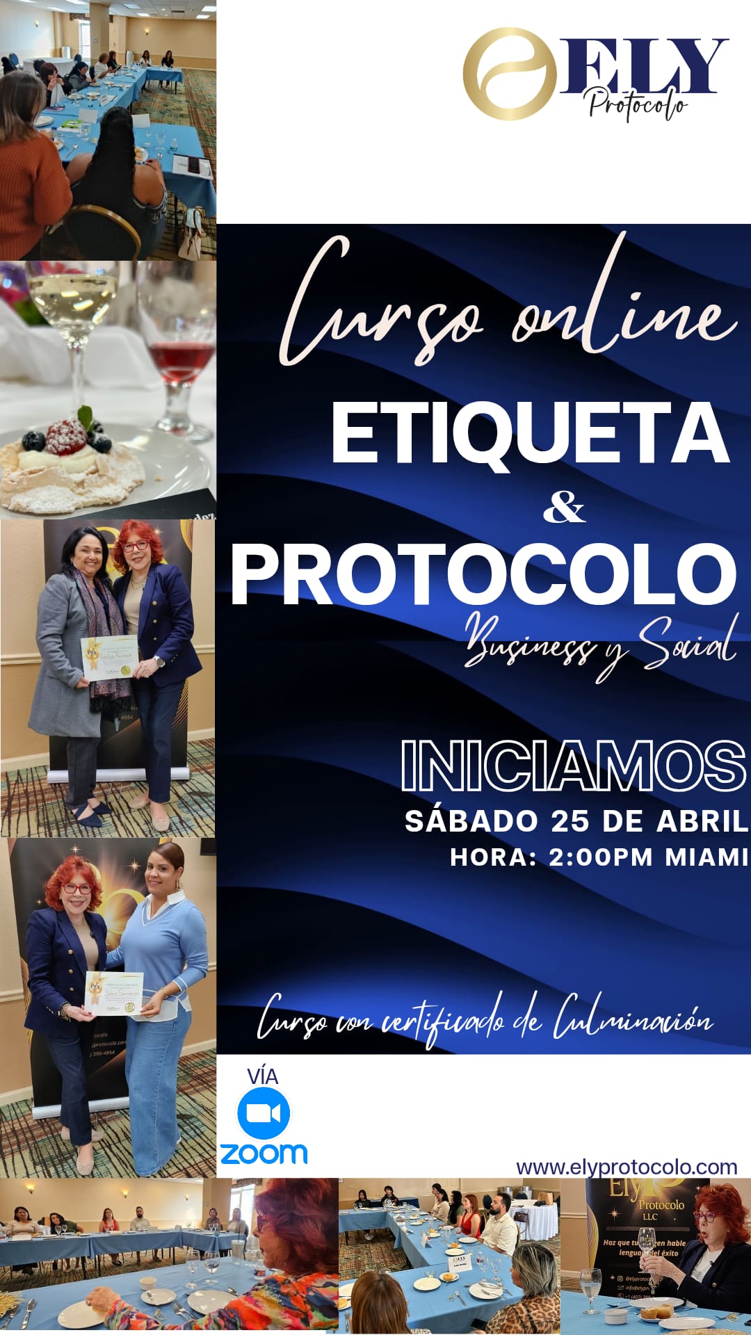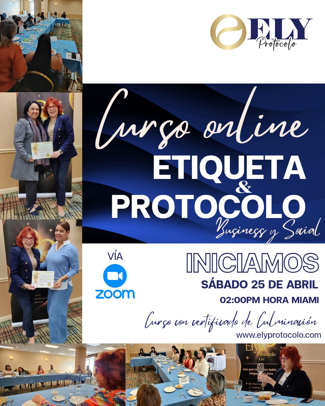 Tu forma de hablar, saludar y comportarte define cómo te tratan. En ELY Protocolo te enseñamos etiqueta y protocolo social & business de manera práctica, dinámica y transformadora, para que proyectes seguridad, elegancia y liderazgo en cada entorno.